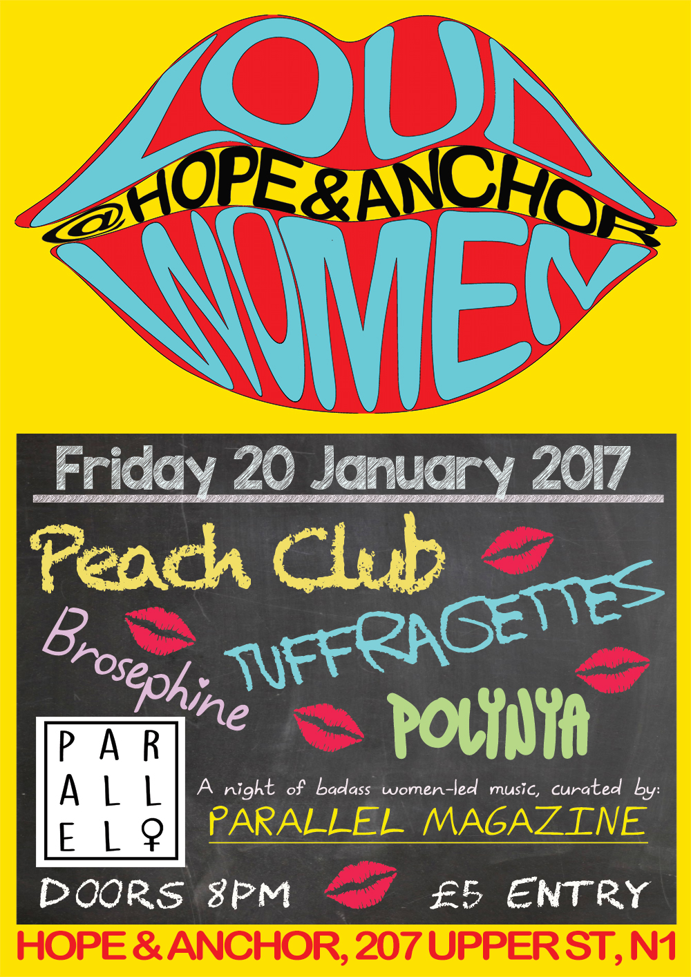 A LOUD WOMEN night of top notch badass woman-led punk/pop/rock/awesome, at the legendary Hope and Anchor, Islington, curated by Parallel Magazine.http://www.theparallelmag.com/
