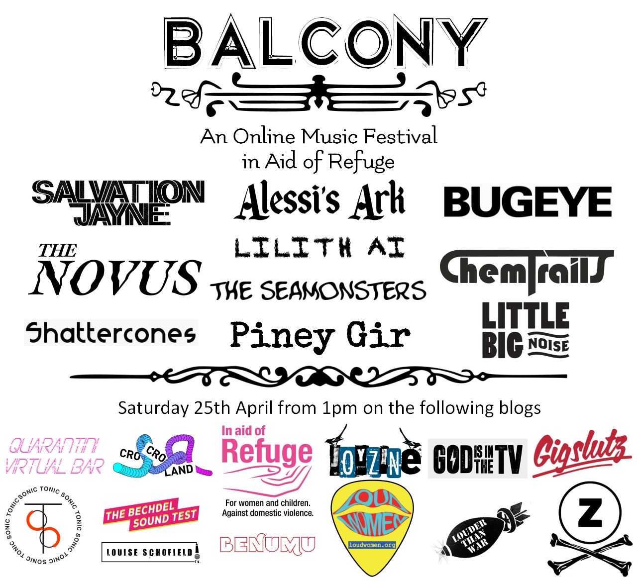 Named for the Italian musicians who sang from their windows during the early days of the lockdown, Balcony will be presented by Louise Schofield (BBC Sesh). The festival will include exclusive live performances by bands and artists selected by Joyzine, Louderthanwar, LOUD WOMEN, God Is In The TV Zine., GigSlutz, The Zine UK, Benumu, Crocroland, Sonic Tonic, The Bechdel Sound Test and Quarantini – Live Virtual Bar.