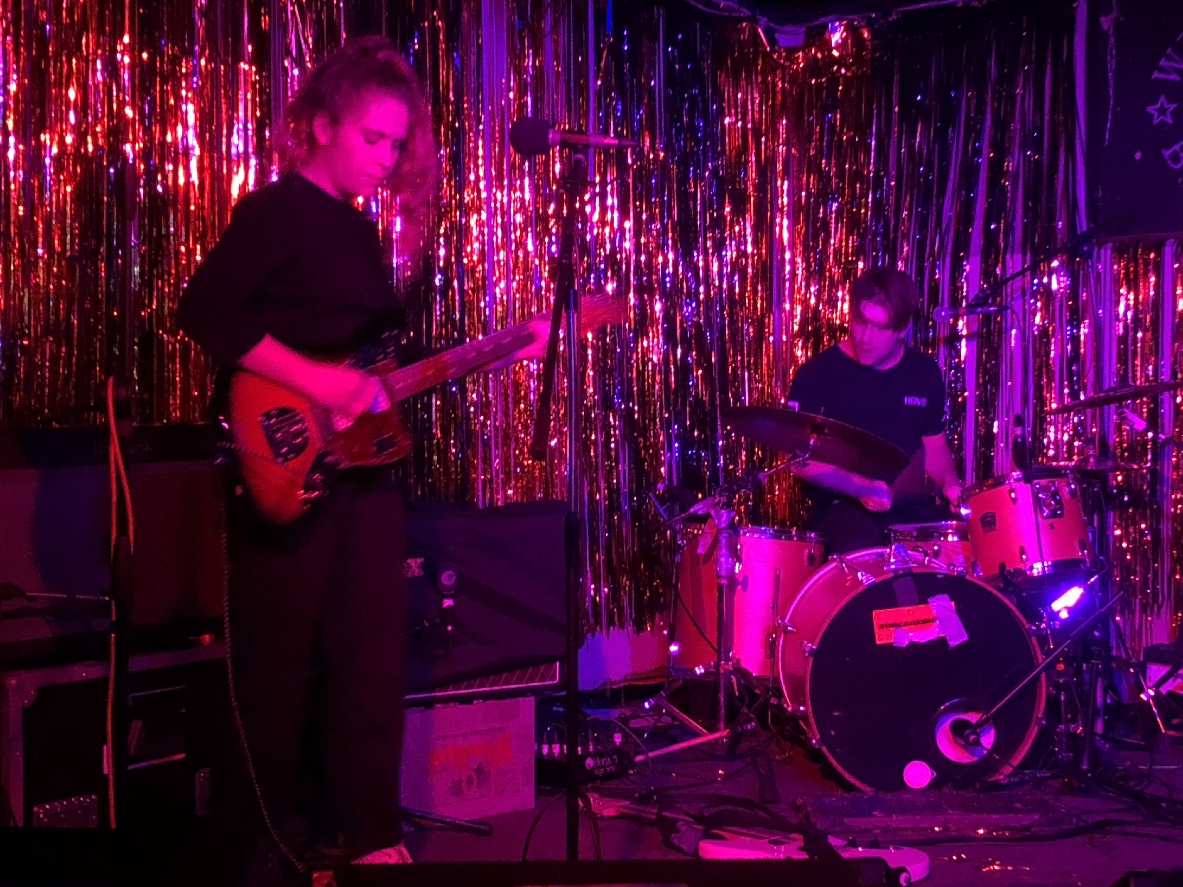 Last band of the night was the aforementioned Scrounge (or ‘Scroonge’ as they will now forever be known, following Ms. Alexander’s endearingly Gallic mispronunciation of their name at the end of A VOID’s set…). I’ve been a fan of Lucy (vocals & guitar) and Luke (drums and vocals!) ever since I caught them early in their career at the Finsbury a couple of years ago. The ferocity of their music, particularly when played live, is totally at odds with the sheer niceness of the duo as people. Loud, urgent and at times quite scary, it has so far come over better on stage, where its adrenaline-fuelled rawness seems less confined on songs like ‘Purpose’, ‘Etch’ and particularly ‘Badoom’, an almost unfollowable set-ender and night-ender for that matter.