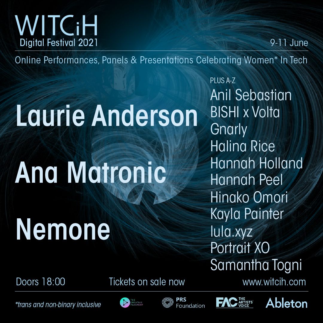 For this 2021 virtual edition, WITCiH is delighted to present its headline guests – avant-garde legend and innovator, Laurie Anderson, BBC Radio 6 Music broadcaster and psychotherapist, Nemone and pioneering queer icon and DJ Ana Matronic.