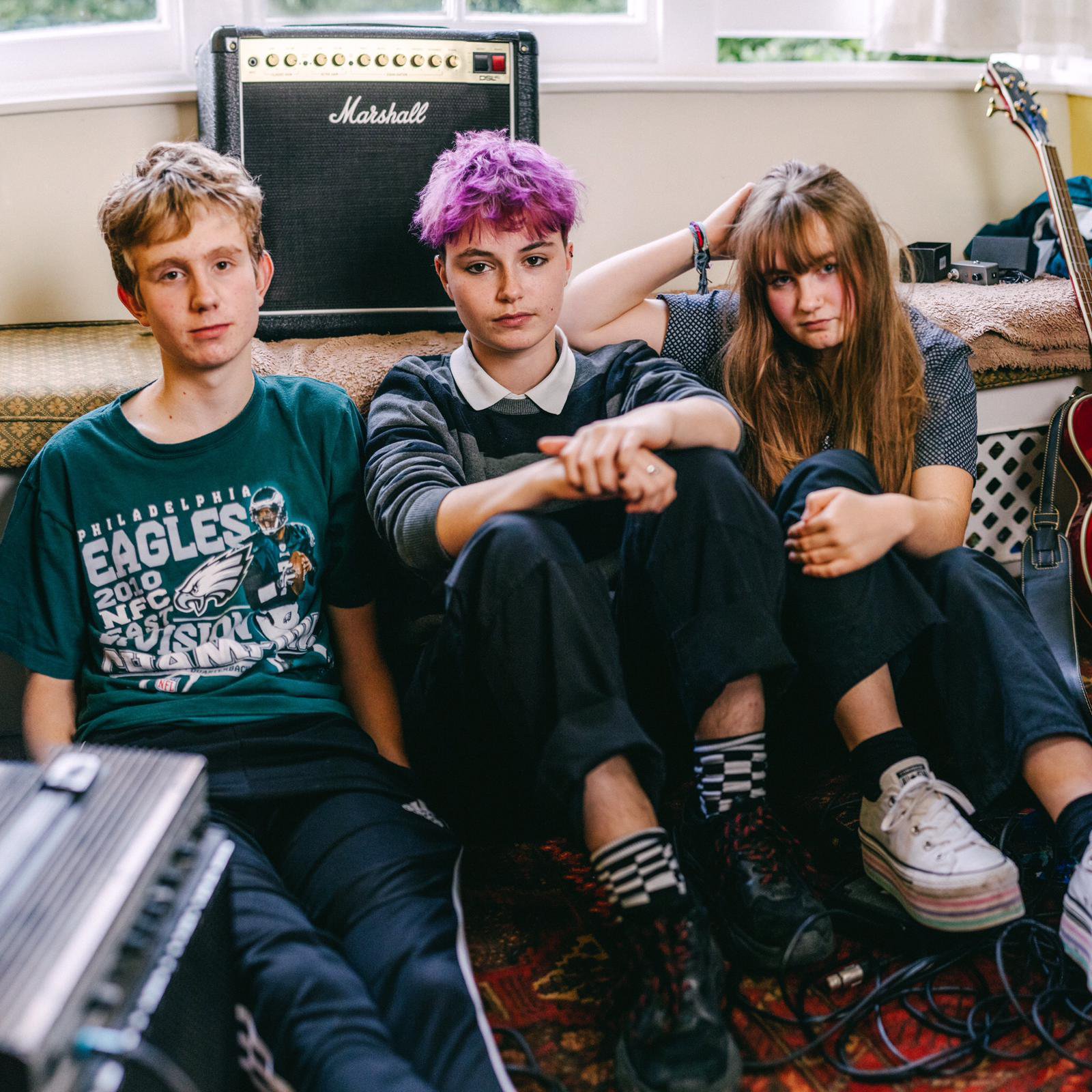 The band North London teens are Noah Lonergan (vocals and guitar), Amber Welsh (bass) and Harry Heard (drums) – they met at primary school! They say they were “brought up properly on the music of Patti Smith, The Who and The Clash and their sound is influenced by Nirvana, Royal Blood and Idles”.