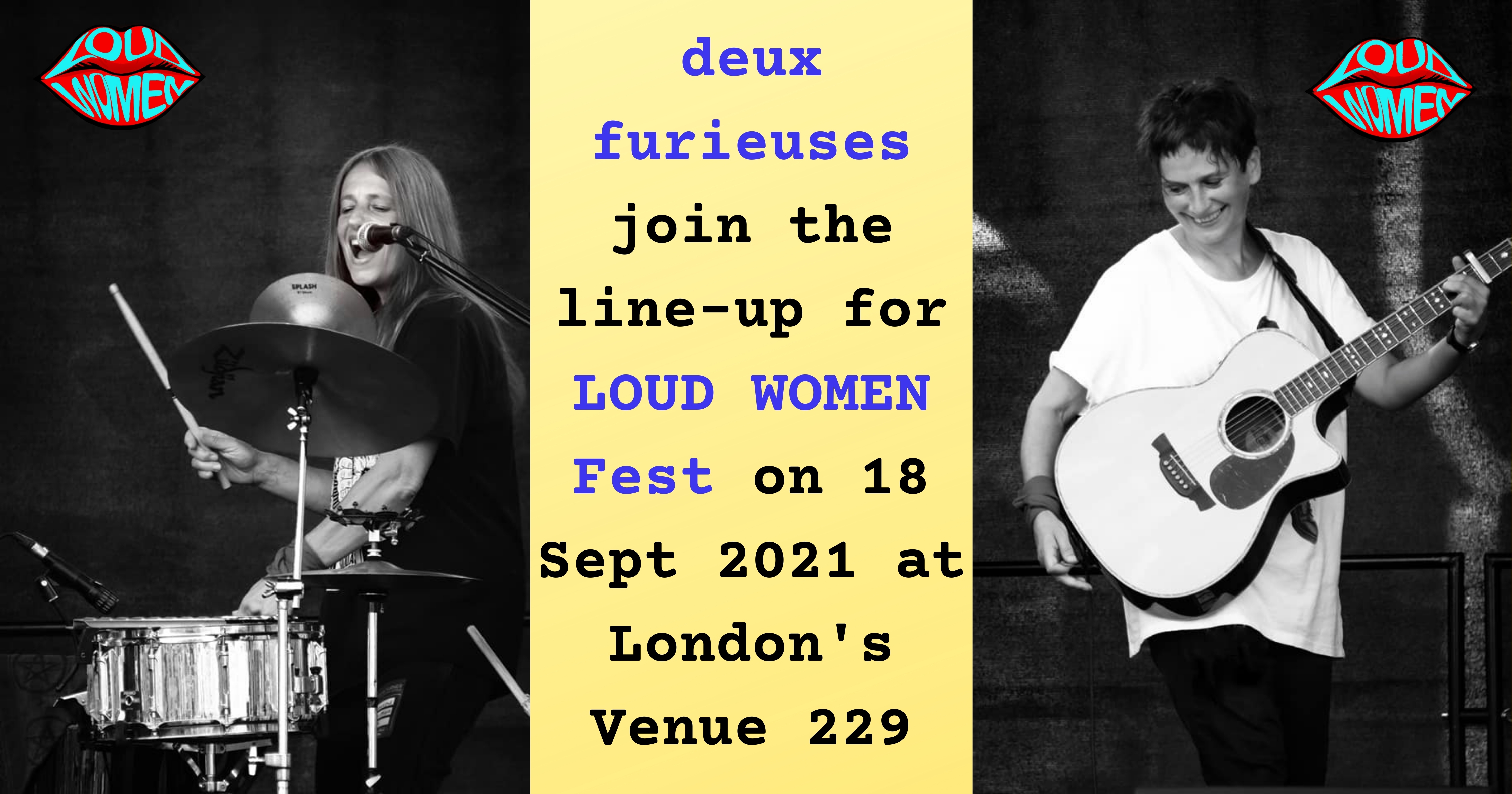 We are so excited to announce that the awesome post-punk duo deux furieuses will be joining us for LOUD WOMEN Fest 5 on 18 September, at London’s 229 venue. They’re an incredible band, mega talents, and supportive members of our scene – so a perfect addition to what looks set to be a truly brilliant day of live music. Come see ’em!