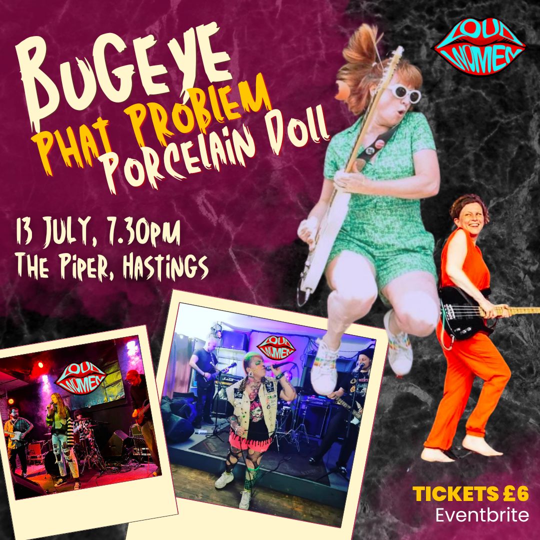 | Thursday 13 July | St. Leonard’s | The Piper | Bugeye + Porcelain Doll + Phat Problem | ***GIG OF THE WEEK*** Bugeye are “the sparkliest disco rockers ever to come out of Croydon” – joined by Brighton’s Porcelain Doll and Phat Problem. Tickets |