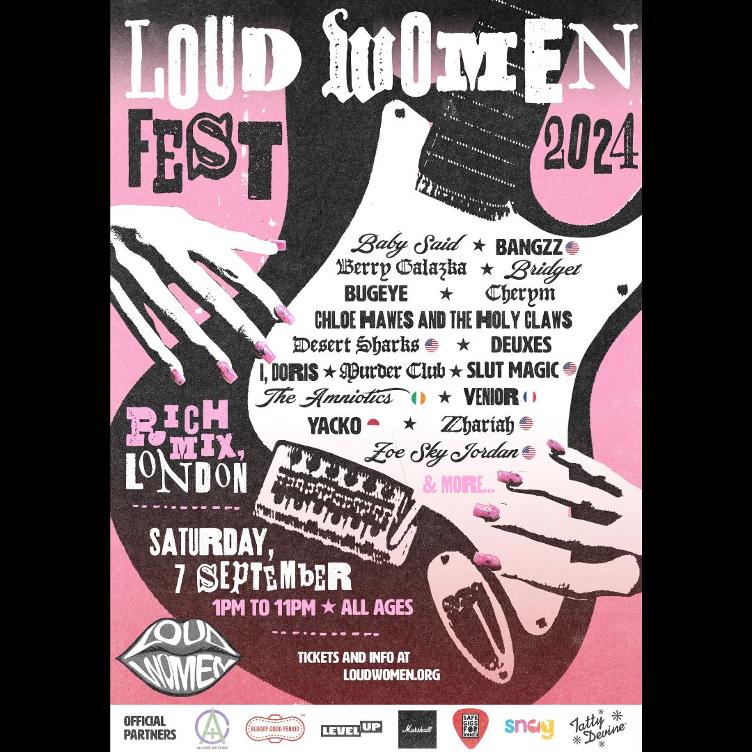 LOUD WOMEN Fest 2024 is happening on 7 September at Rich Mix, London – featuring our most varied, international and exciting lineup yet! To help you familiarise yourself with these, perhaps your new favourite bands, we made a glorious playlist of all the band we’ve announced so far.