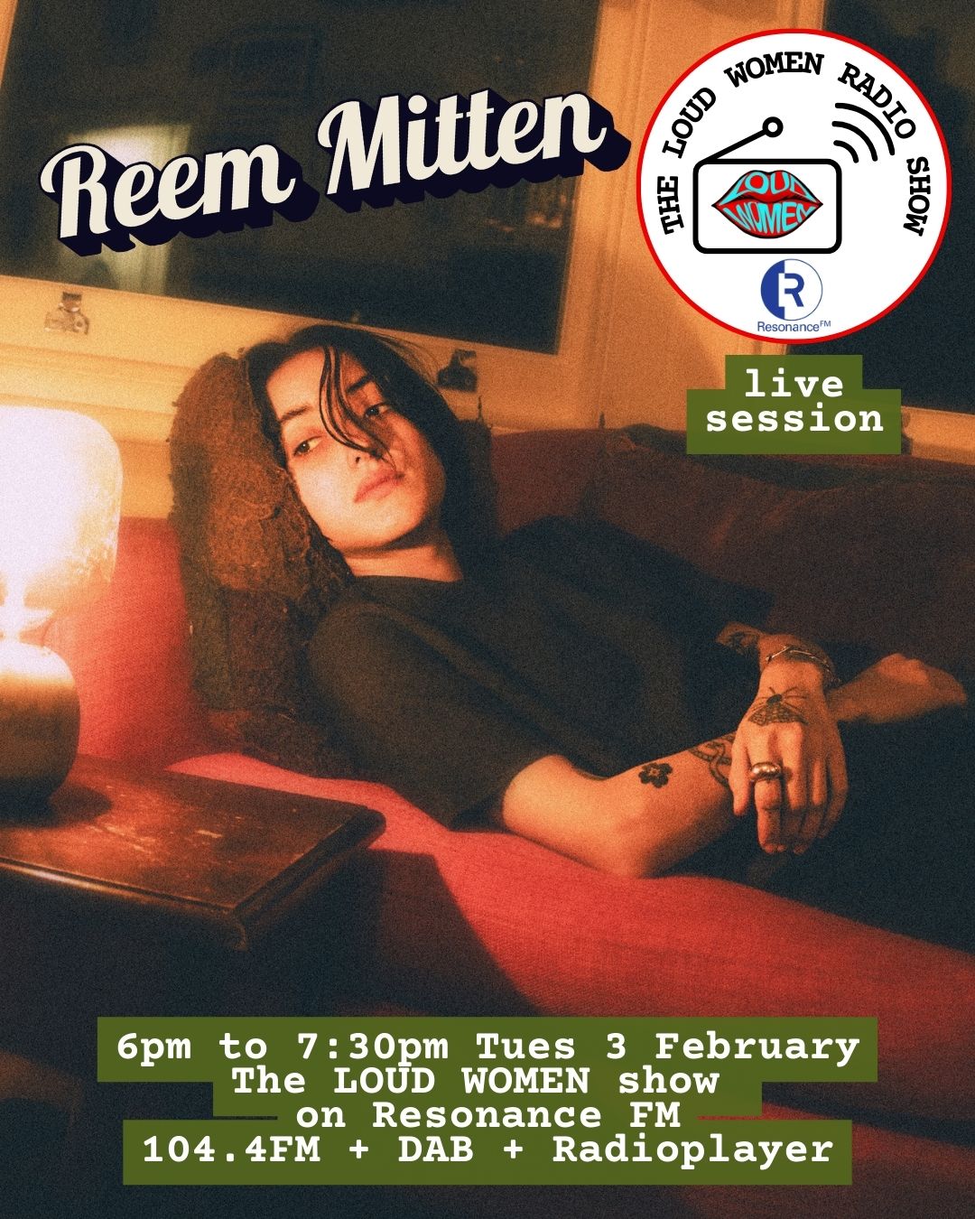 Tune in to the LOUD WOMEN Radio Show, live from London on Tuesday 3 Feb, 6–7.30pm! Hosts Cassie Fox and Anastasiia Stakova will be joined by NW London rising star Reem Mitten for a live session, and spinning brand new music from I, Doris, Twat Union, unpolished*, The Empty Page, Tess & the Details, The Black Mariah Theater and lots more!