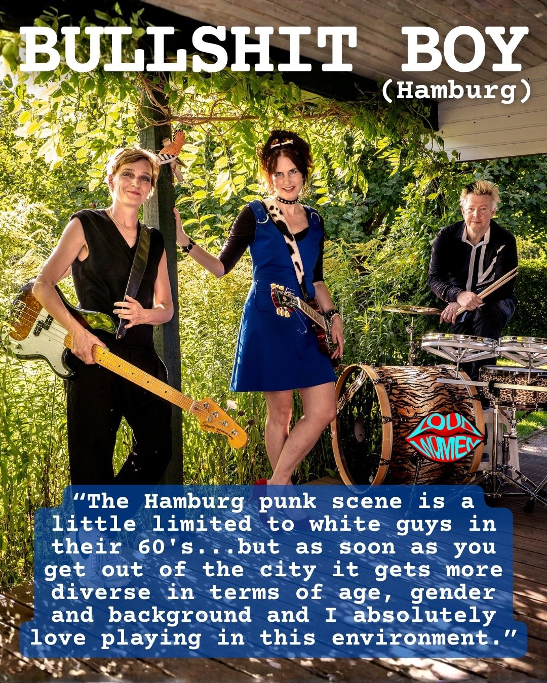 We’ve been following LOUD WOMEN and your amazing work for a long time (we got a gig partner in Wolverhampton through you last year) and we love, love, LOVE to be part of LOUD WOMEN Fest Hamburg – thank you so much!!!
